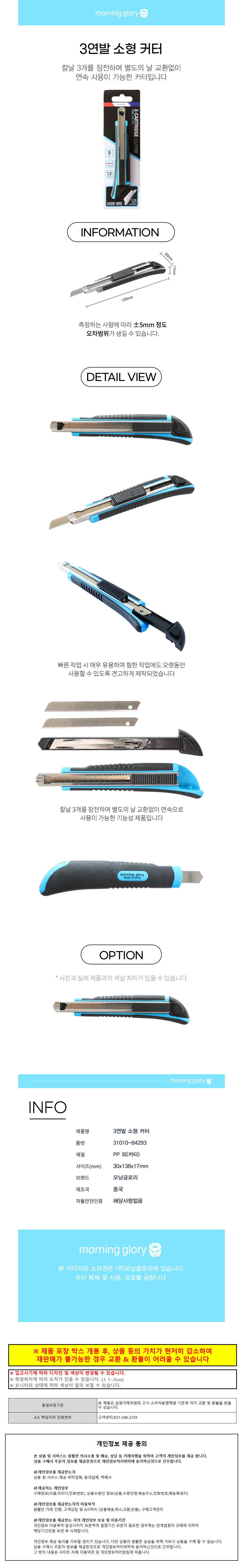 모닝글로리 커터칼 3연발 커터 (소형)