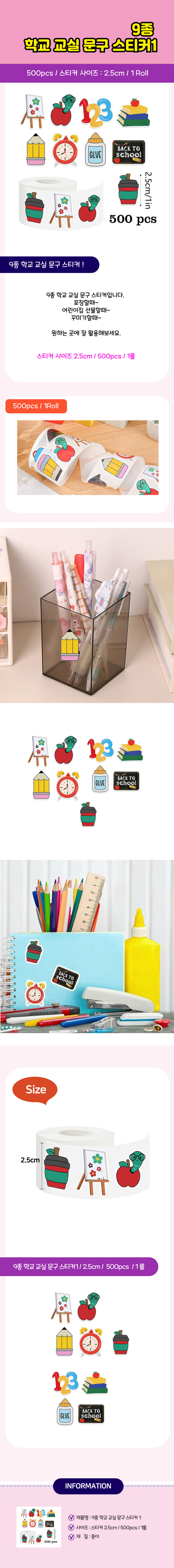 9종 교실 학교 문구 스티커1 500pcs 꾸미기 답례품 S6170