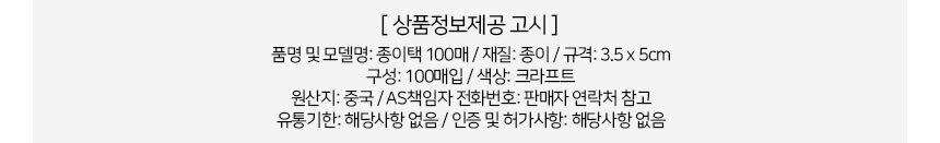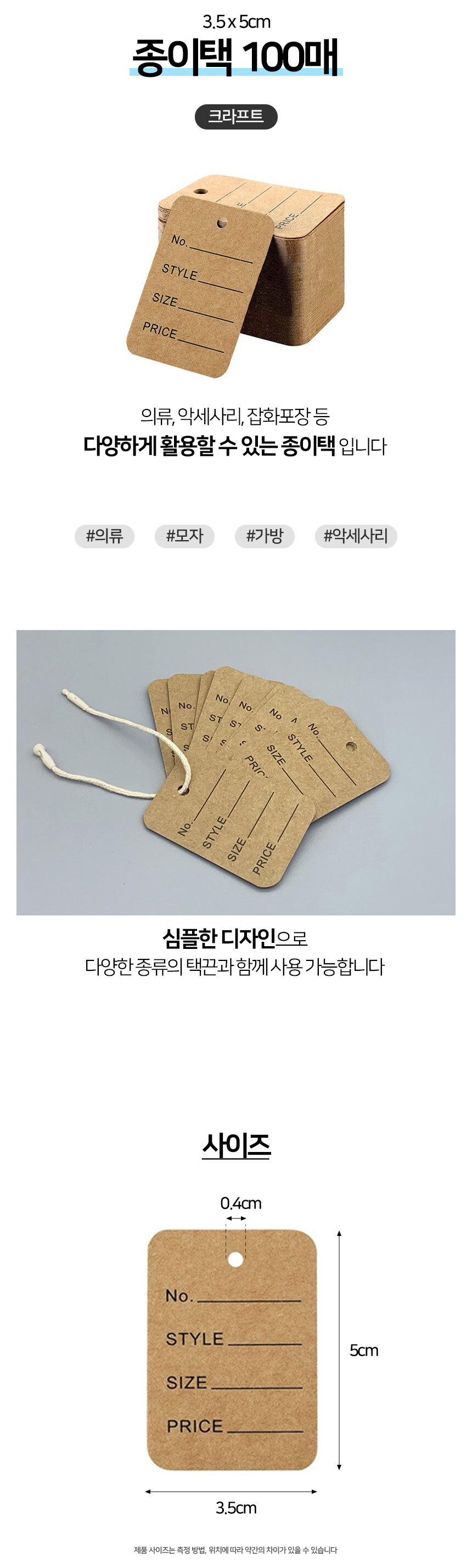 행택 의류택 종이택 가격 라벨택 크라프트 3.5x5cm 100매