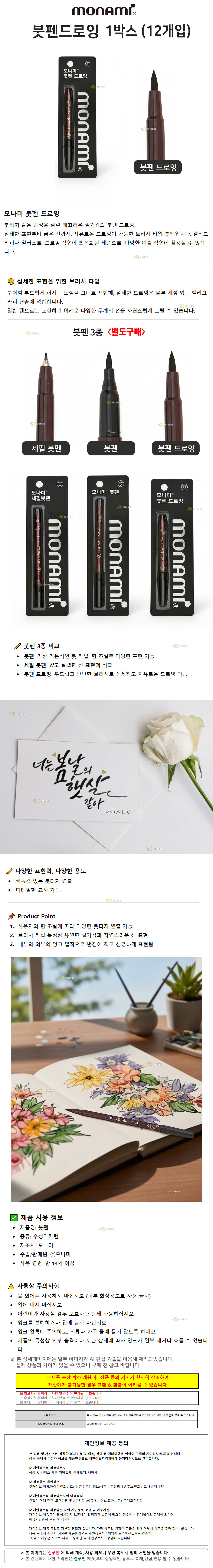 모나미 캘리그라피 붓펜드로잉 블랙 12개입 (1박스)