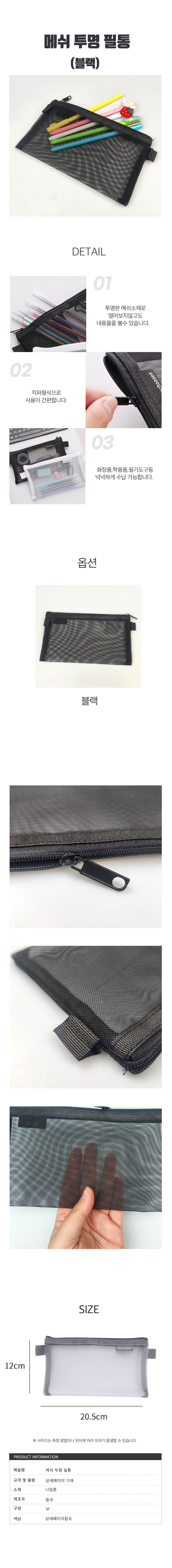 매쉬 지퍼 필통 파우치 블랙 심플 대용량 필통