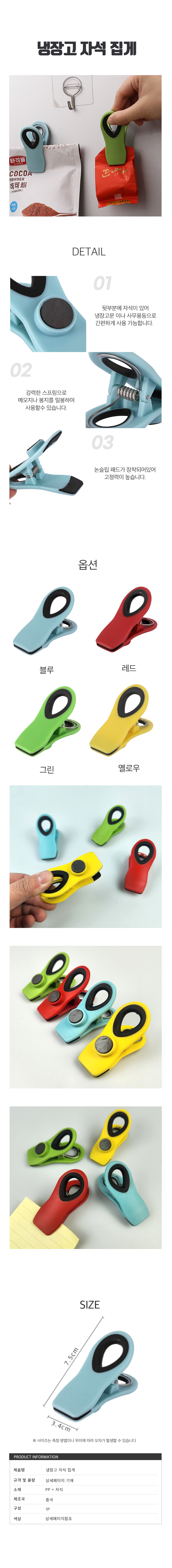 컬러 사무용 자석 집게 냉장고 메모 클립