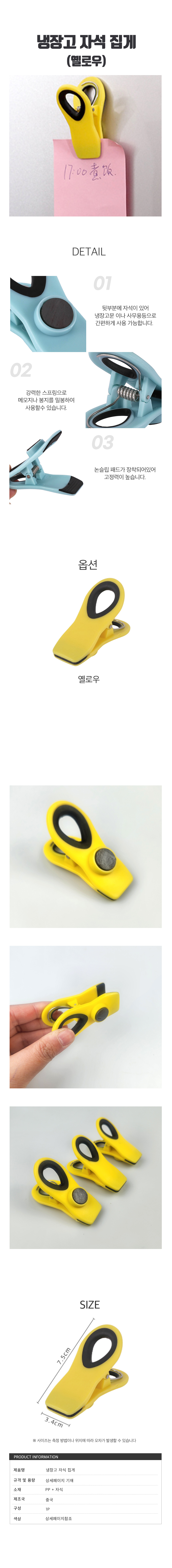 냉장고 자석 집게 옐로우 사무용 메모 클립