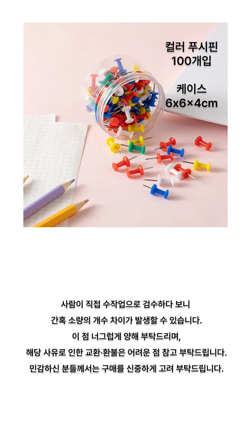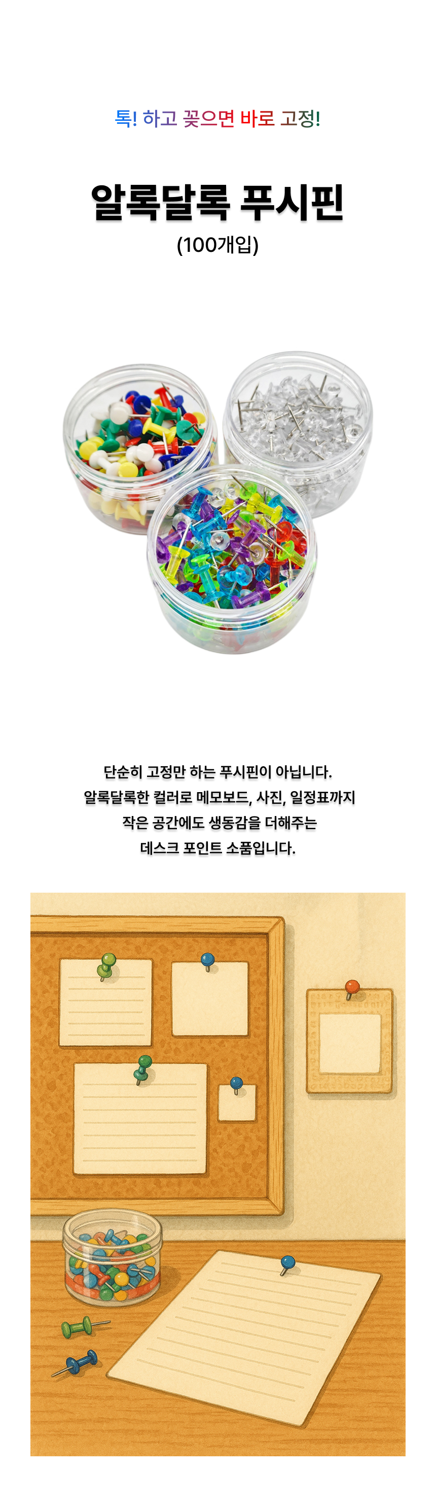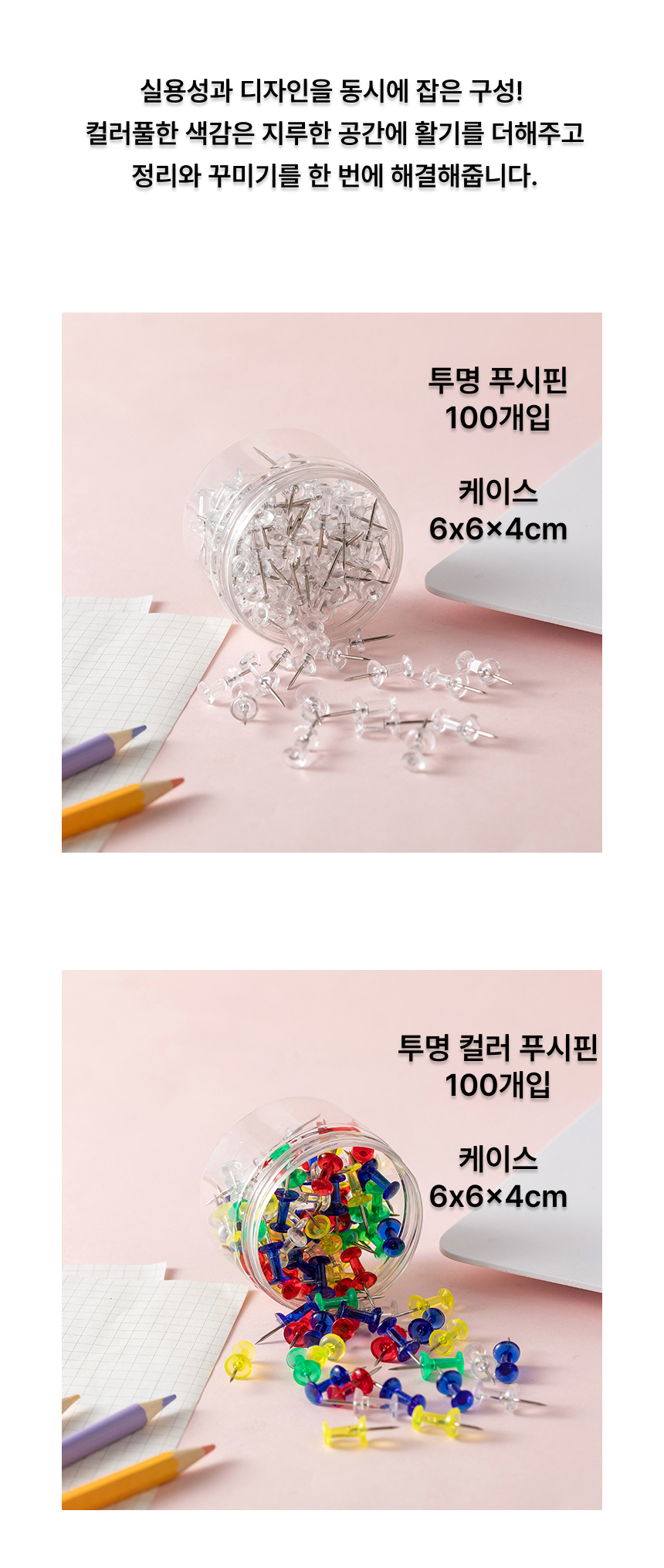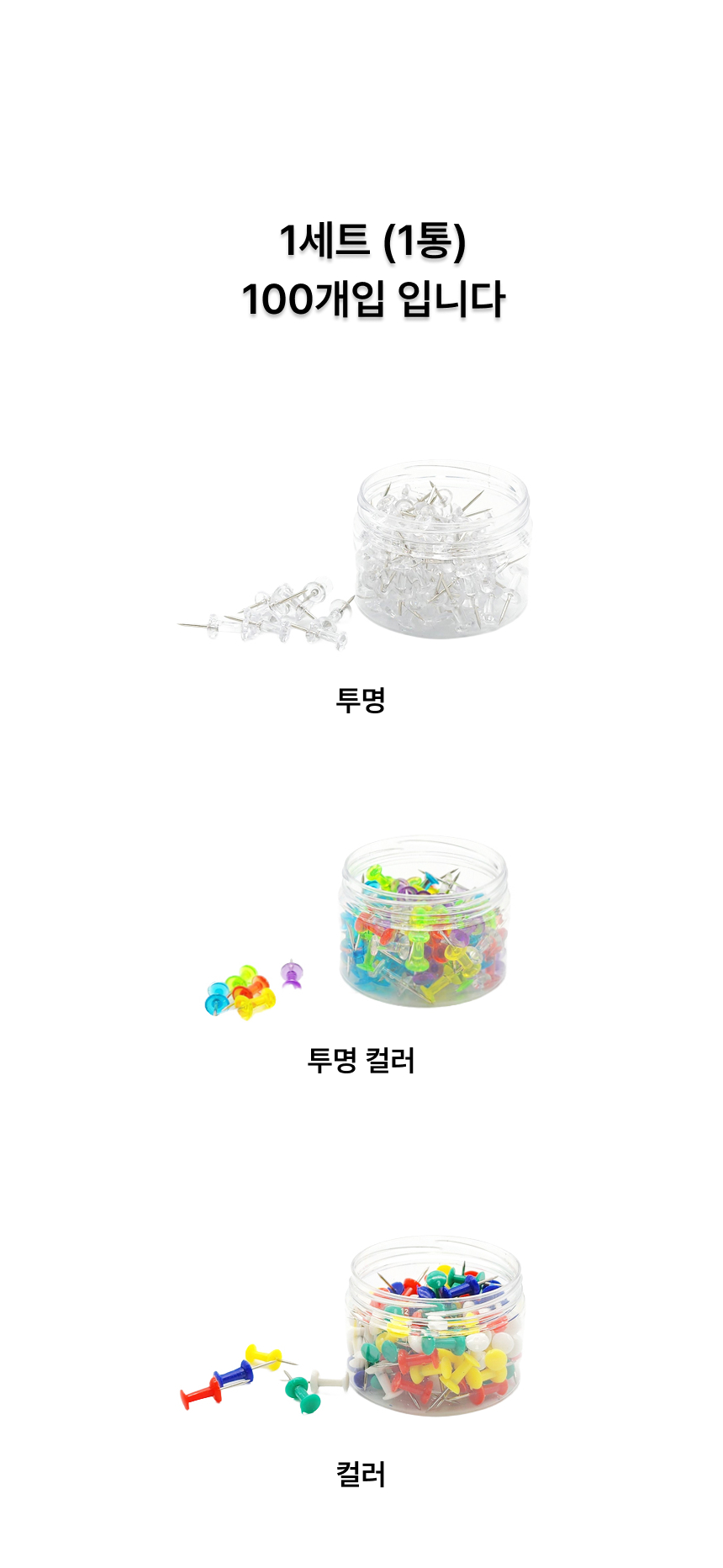 알록달록 컬러 푸시핀 장구핀 압정 (100개입)