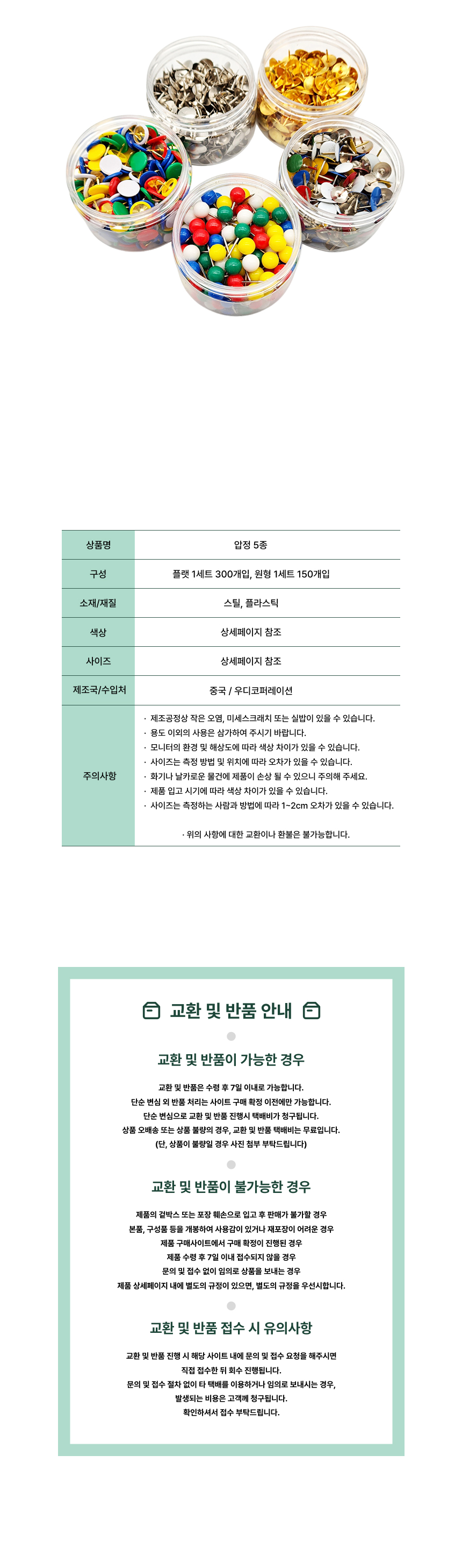 압정 5가지 골드 실버 컬러 원형