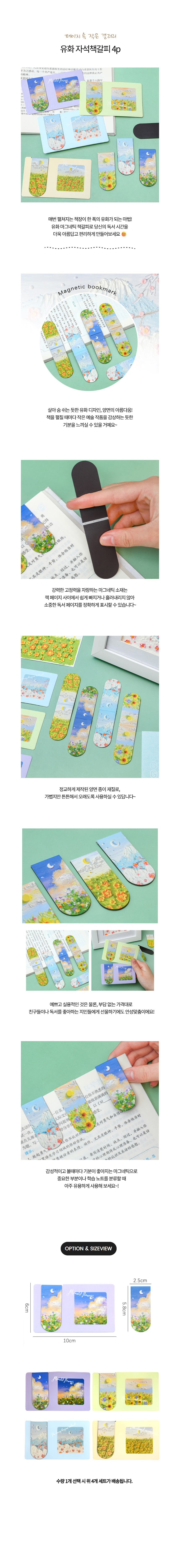 유화 자석 책갈피 슬림 마그네틱 북마크 북클립 4p