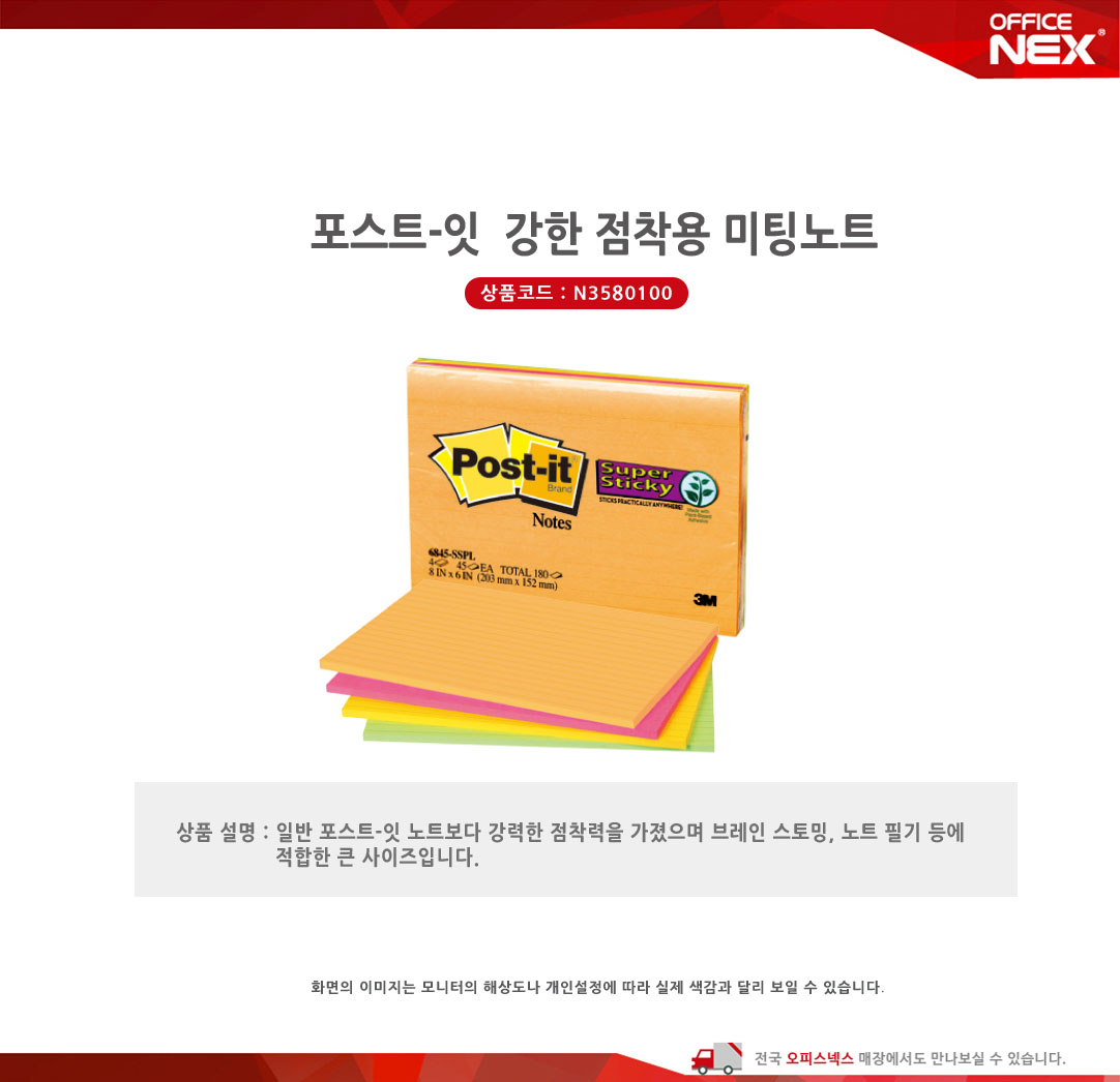 | 품명 및 모델명 | 포스트잇미팅노트6845-SSPL(4색 45매x4권 203x152mm) |