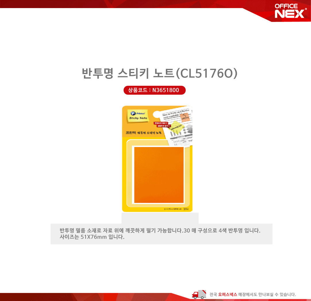 CL5176O반투명스티키노트 주황 51 x76 30매