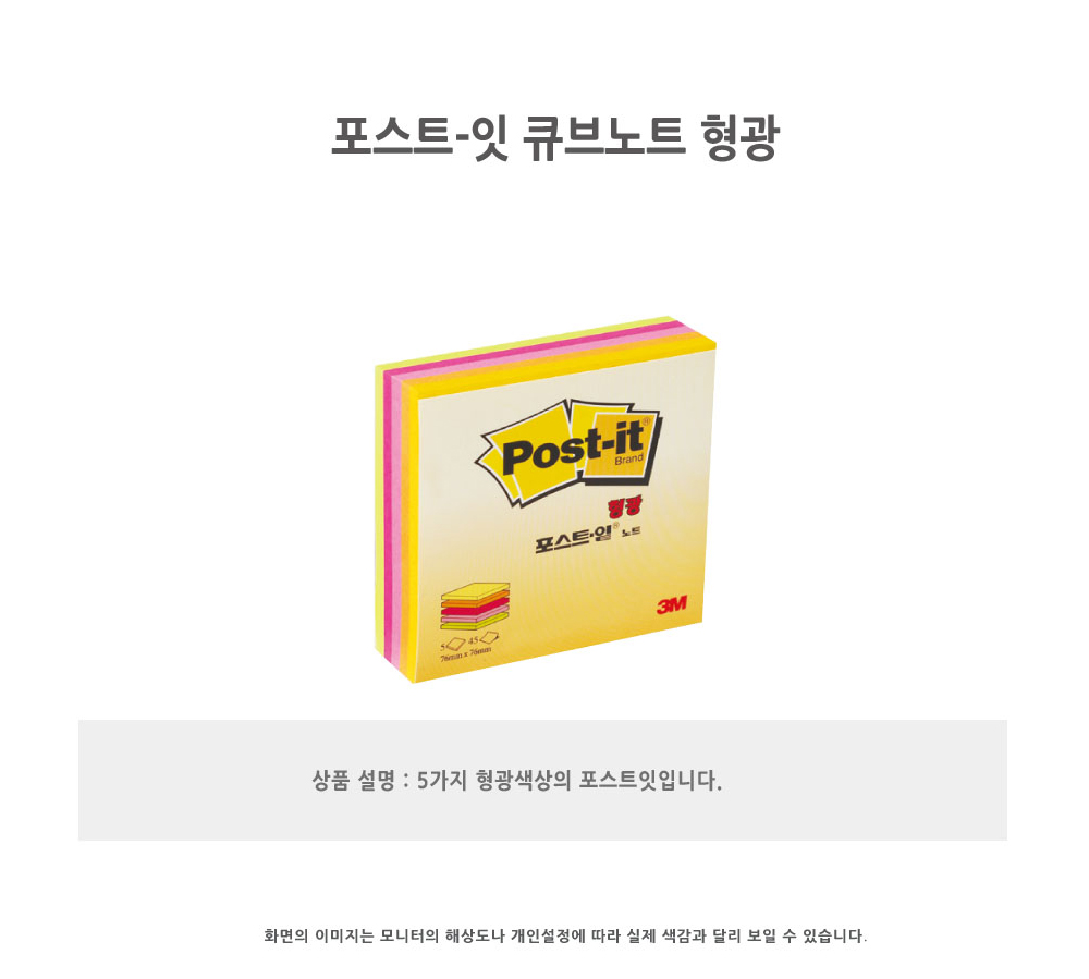 품명 및 모델명 3M 포스트잇큐브노트형광 CU-33(45장 5색상 76x76mm)