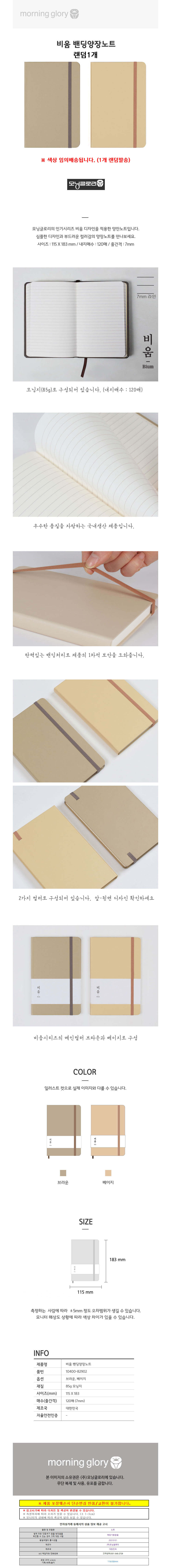 모닝글로리 7000 비움 밴딩 양장노트2 랜덤1개