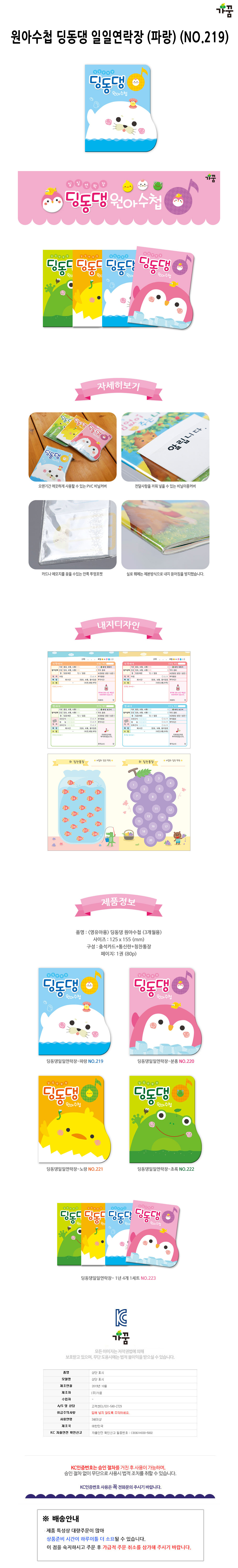 가꿈 1800 원아수첩 딩동댕 일일연락장 파랑 NO.219