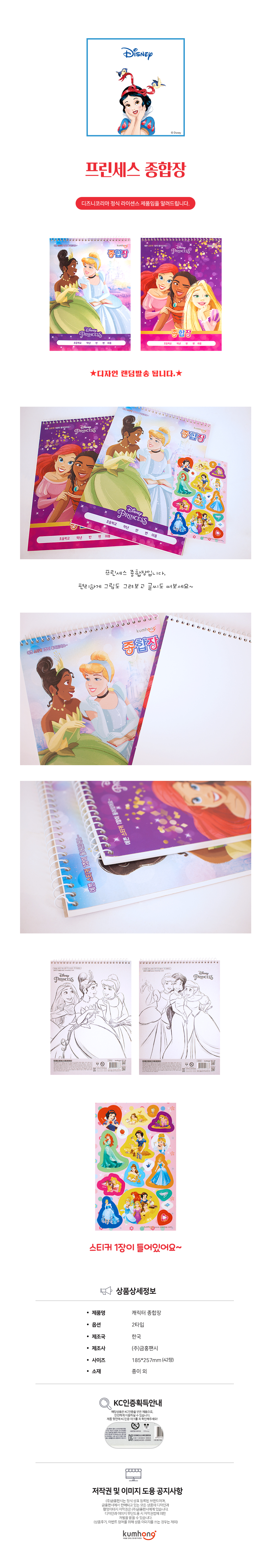 프린세스 종합장/247683 초등 노트 공책 무선 연습장