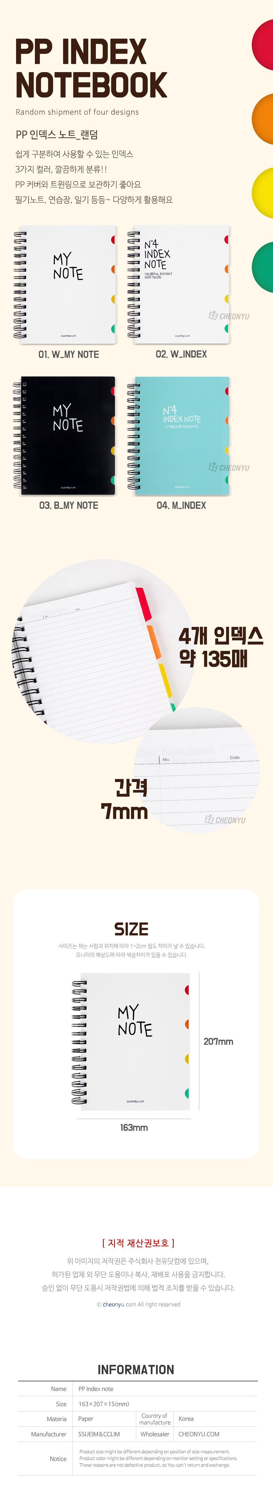 | 품명 및 모델명 | 마이노트 PP 인덱스노트 |