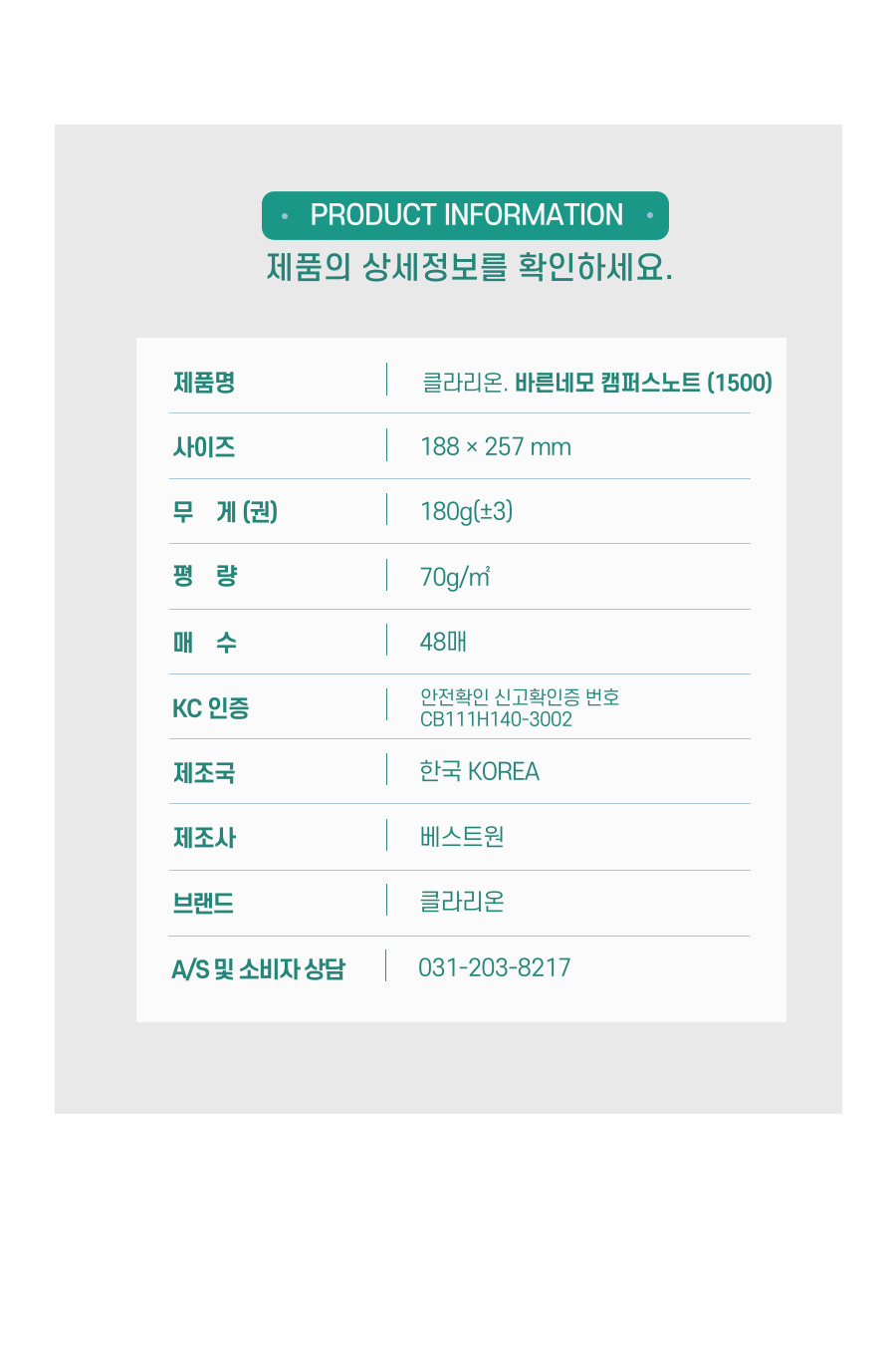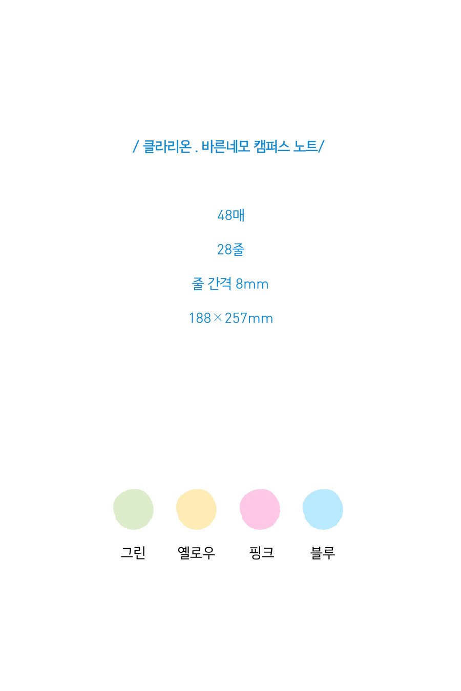 • 모델명클라리온 바른네모 캠퍼스노트 (200...