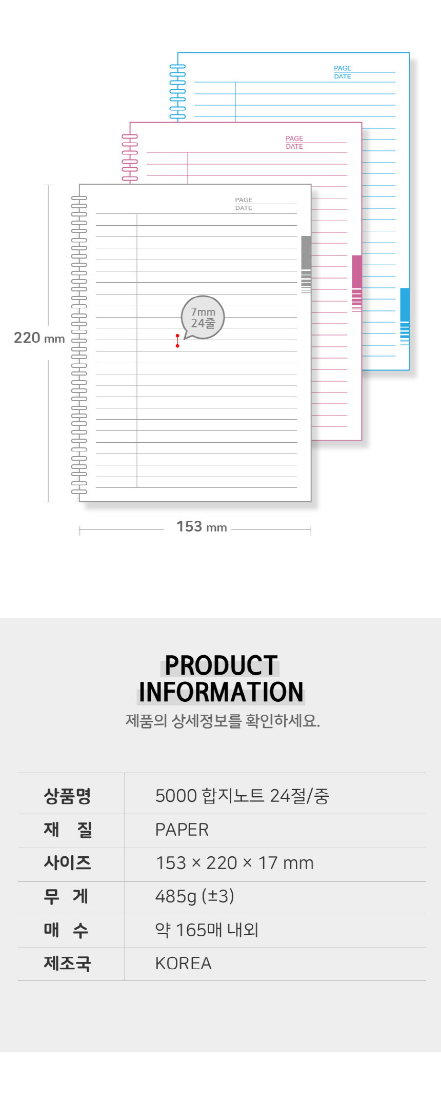 • 모델명5000 합지노트 24절 중
