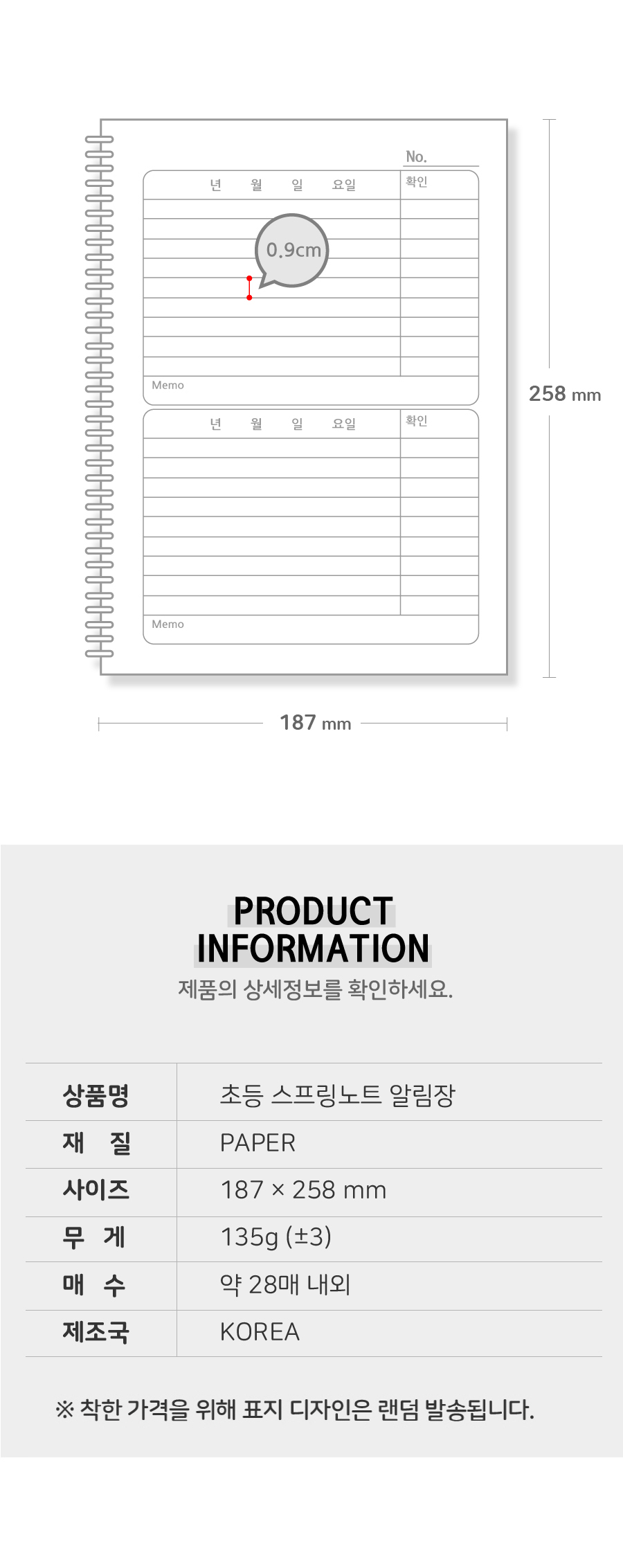 • 모델명초등스프링노트 알림장 5권