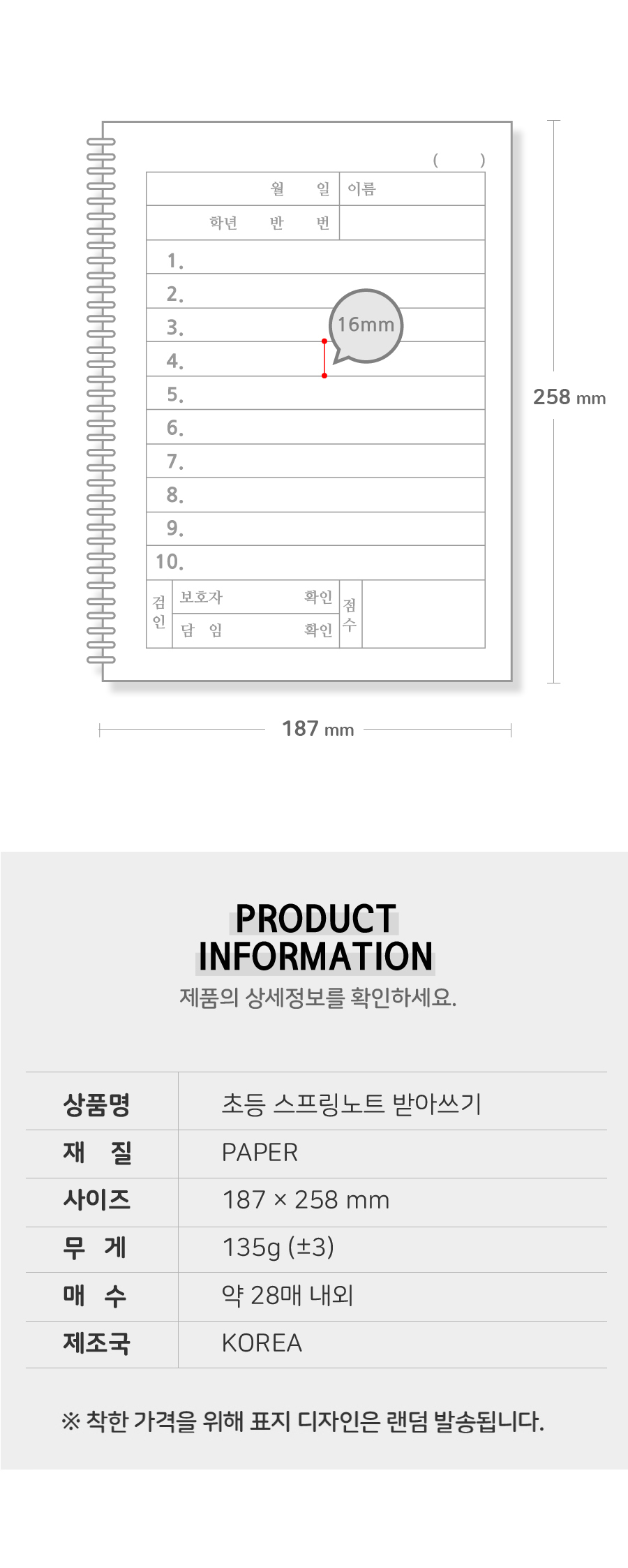 • 모델명초등스프링노트 저학년 받아쓰기 5권