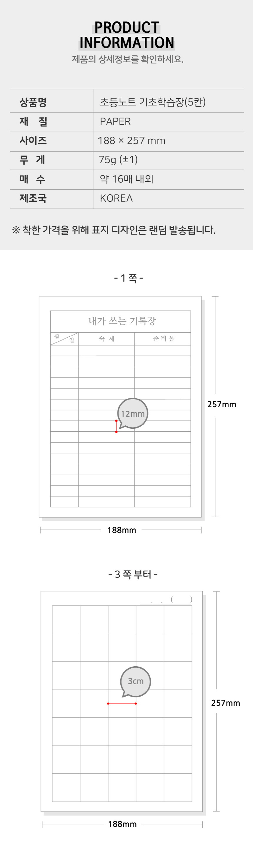 • 모델명초등노트 5칸 기초학습장 10권