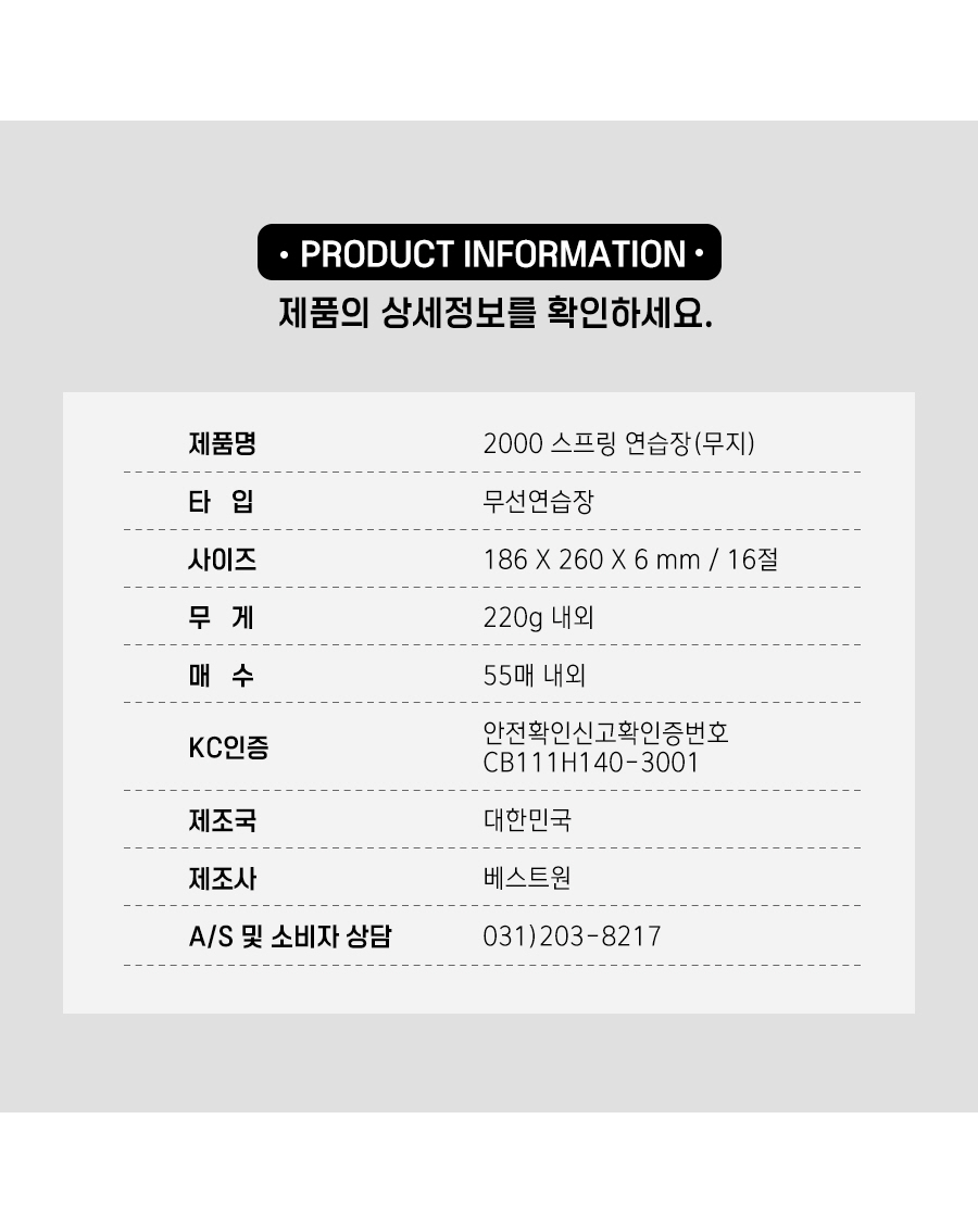 | 품명 및 모델명 | 클라리온 2000 스프링 무지 무선연습장 |