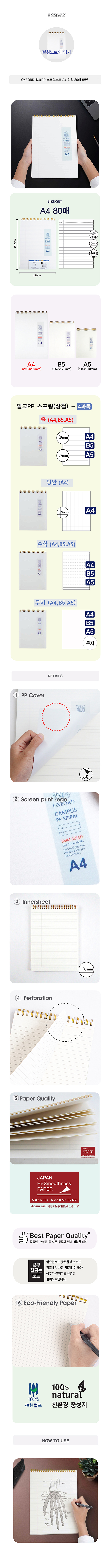 | 품명 및 모델명 | 밀크PP 스프링 노트 (A4 상철 줄 80매 옥스포드) |