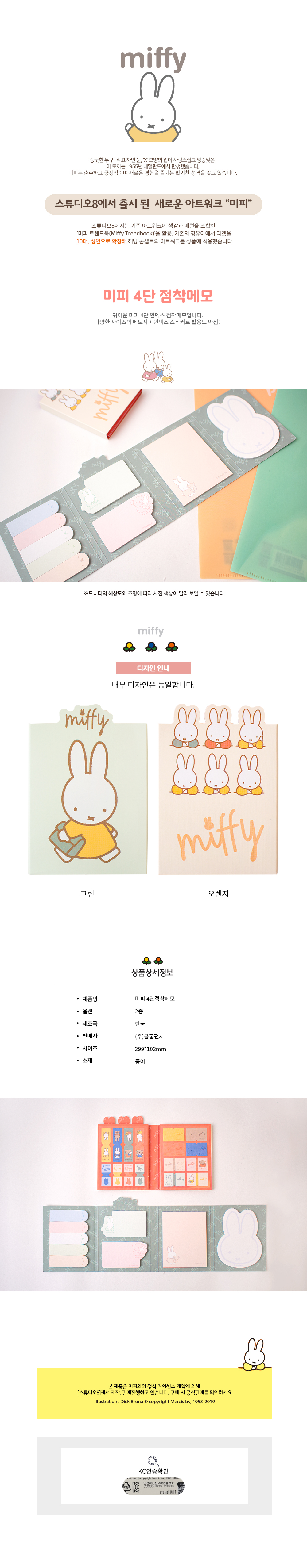 | 품명 및 모델명 | 미피 4단 점착 메모 (인덱스스티커+점착메모 세트) |
