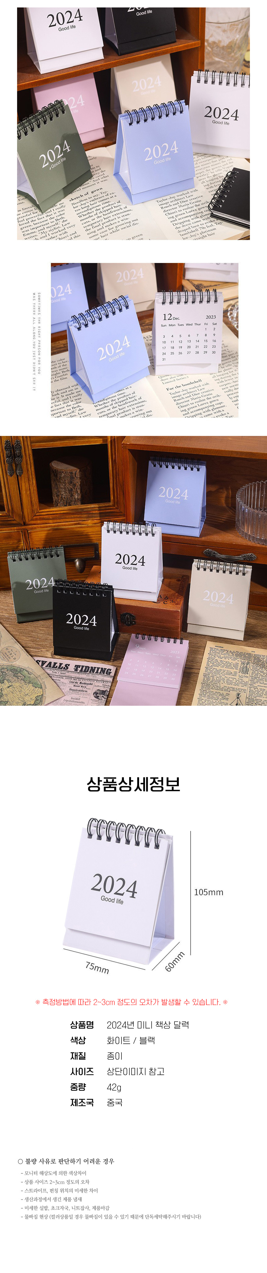 2024년 미니 달력 탁상 책상 작은 캘린더 화이트