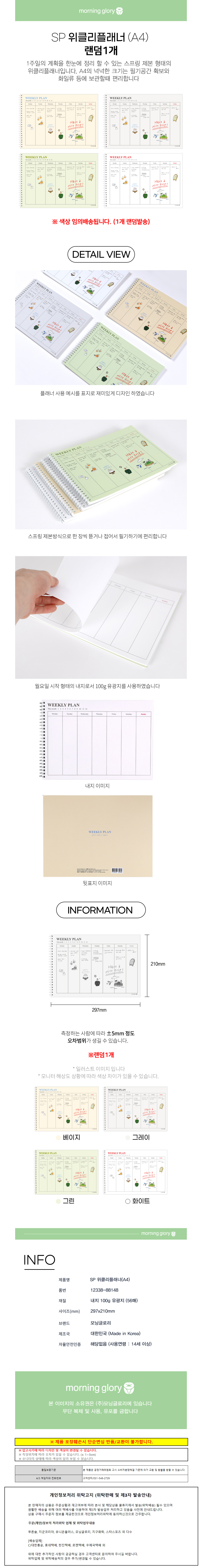모닝글로리 SP위클리플래너 A4 랜덤1개