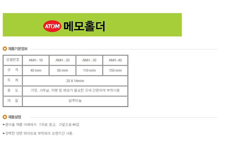 | 품명 및 모델명 | 아톰 메모홀더 특대(150mm) |