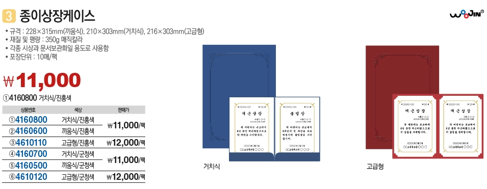 | 품명 및 모델명 | 종이상장케이스(A4/끼움식/군청색/10매/팩/우진) |