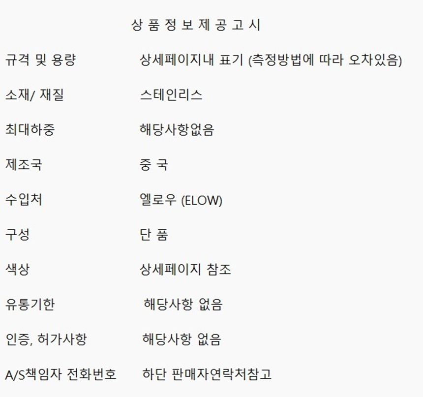 상품요약정보 : 기타