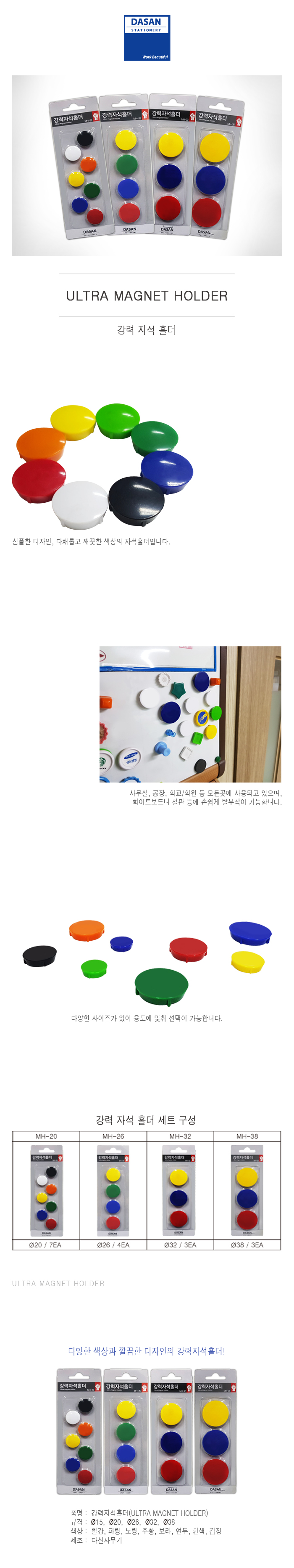 | 품명 및 모델명 | 강력자석홀더 세트(대/MH-32/3개입/Ø32mm) |