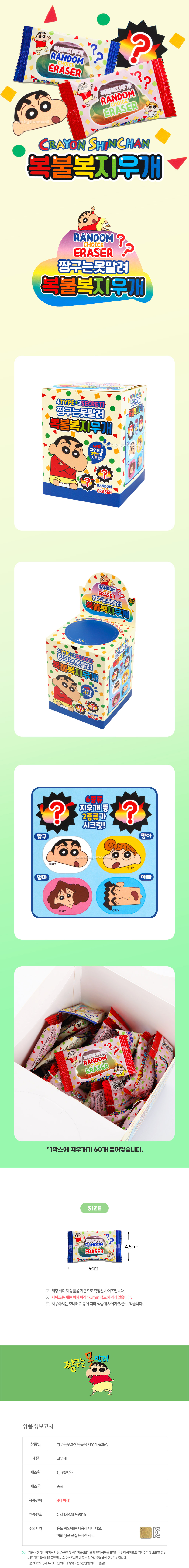 | 품명 및 모델명 | 짱구는못말려 복불복 지우개-60EA |
