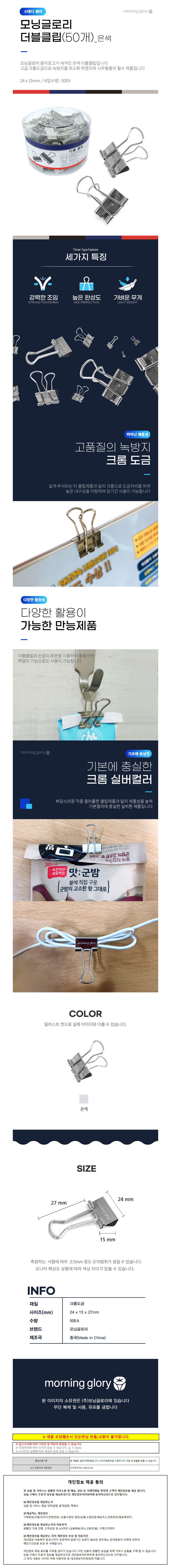 모닝글로리 클립 더블클립 은색 (24x15mm) (50개입)
