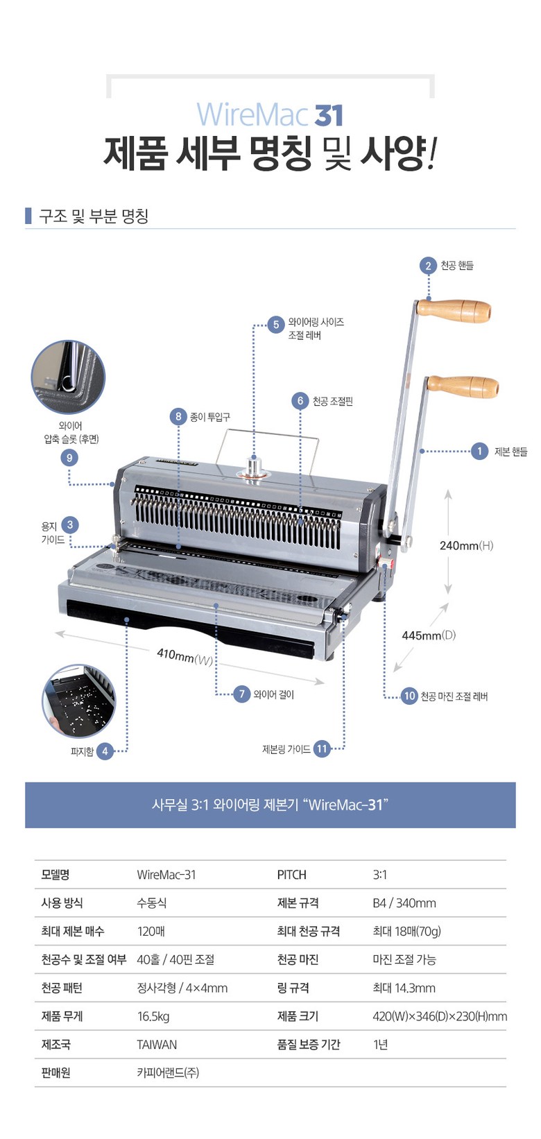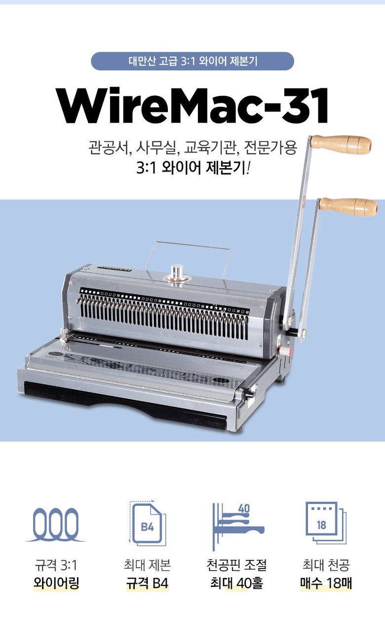 | 품명 및 모델명 | B4 수동 3:1 와이어링 제본기/CS WireMac 31 |