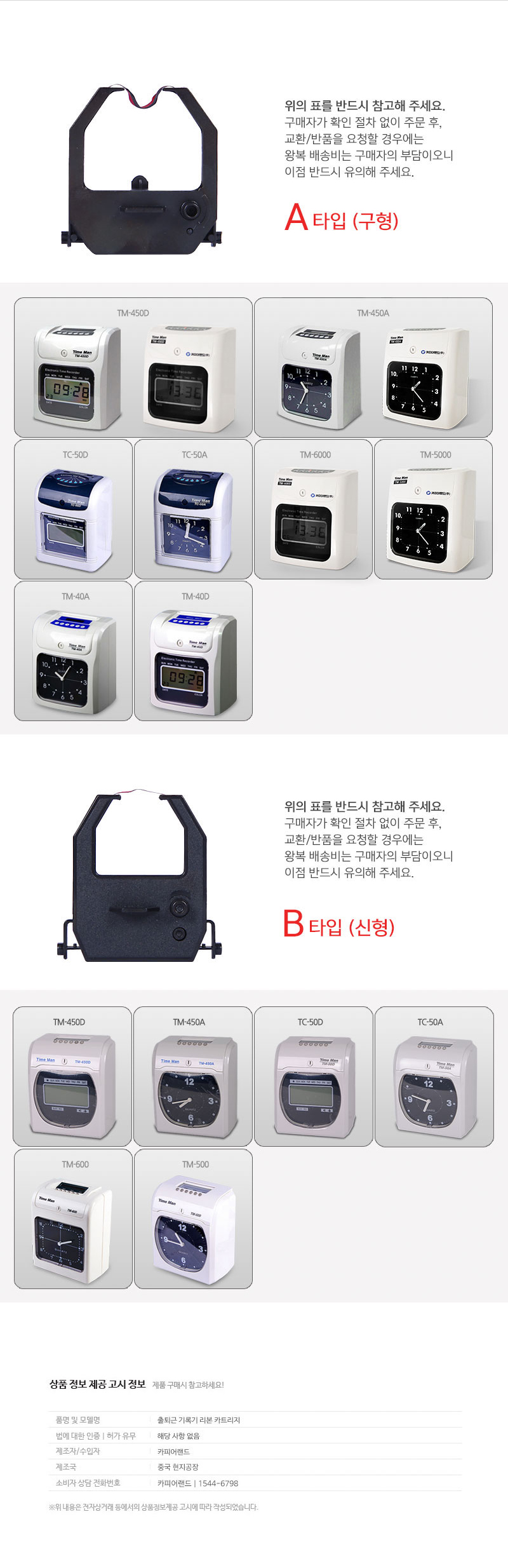 | 품명 및 모델명 | 카피어랜드 출퇴근기록기 리본 카트리지 A타입(구형) |