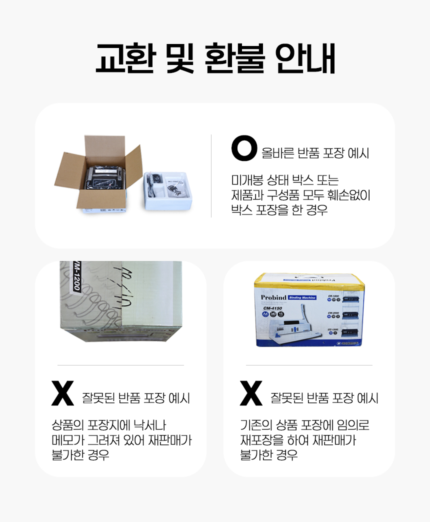 | 제품하자가 아닌 소비자의 단순변심, 착오구매에 따른 청약철회가 불가능한 경우 그 구체적 사유와 근거 | 배송ㆍ교환ㆍ반품 상세설명페이지 참고 |