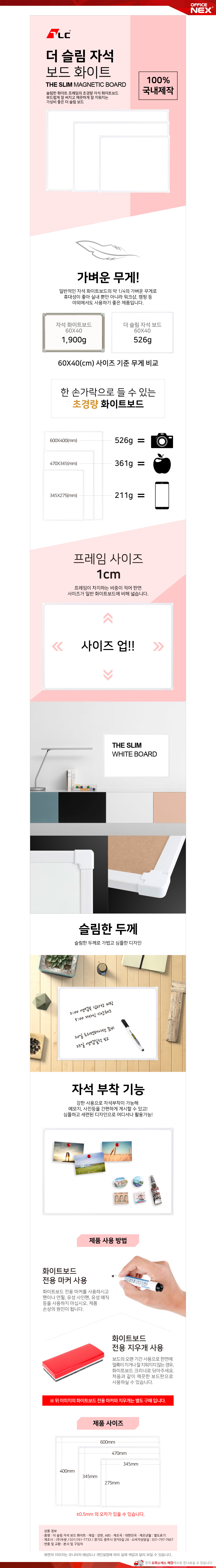 품명 및 모델명 더슬림 자석보드 화이트 470x345mm