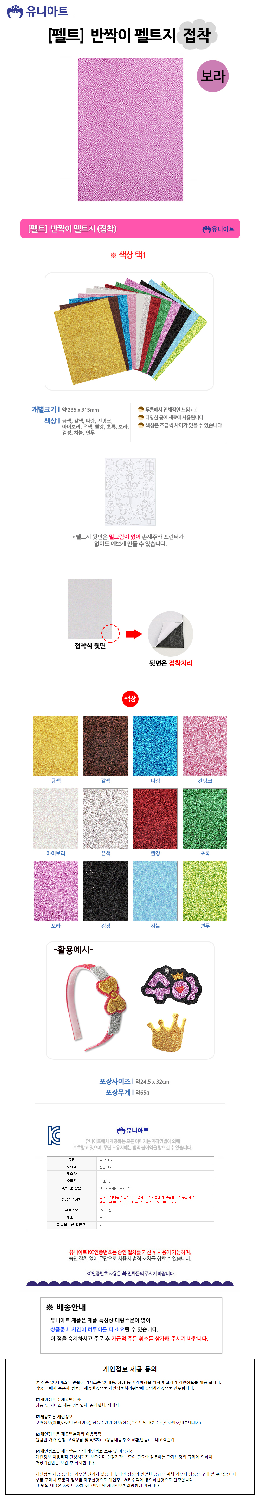 유니아트(펠트) 2500 반짝이 펠트지 (접착) (보라)