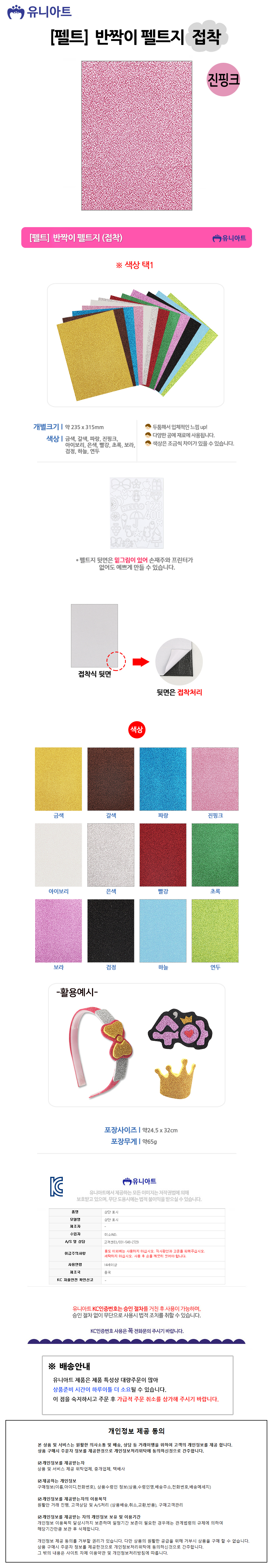 유니아트(펠트) 2500 반짝이 펠트지 (접착) (진핑크)