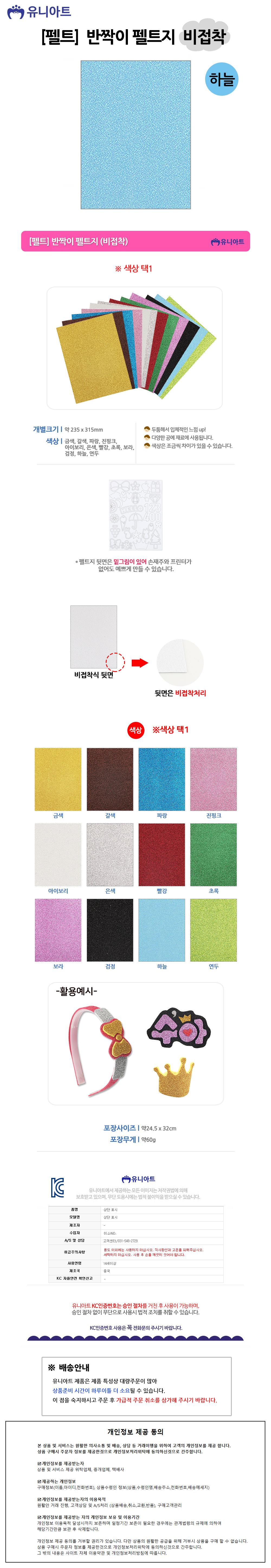 유니아트(펠트) 2000 반짝이 펠트지 (비접착) (하늘)