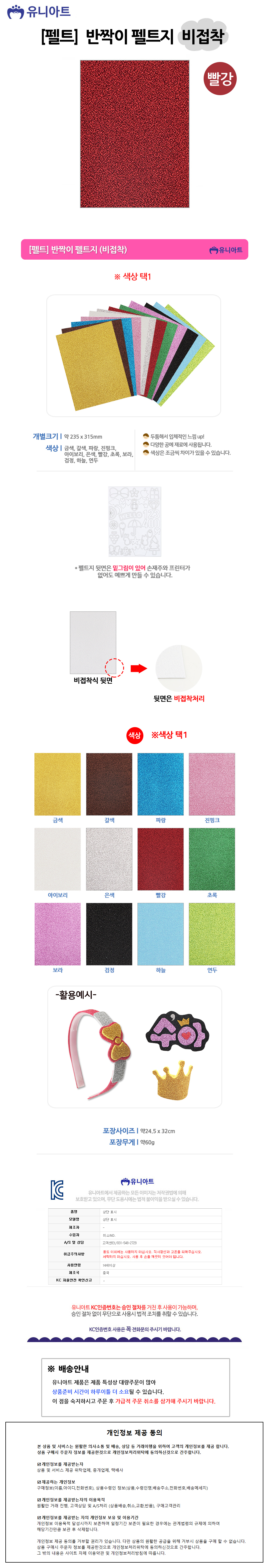 유니아트(펠트) 2000 반짝이 펠트지 (비접착) (빨강)