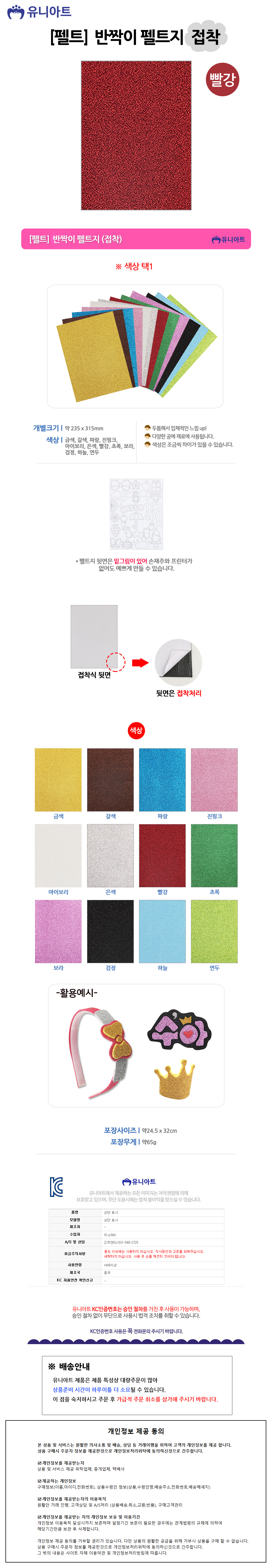 유니아트(펠트) 2500 반짝이 펠트지 (접착) (빨강)