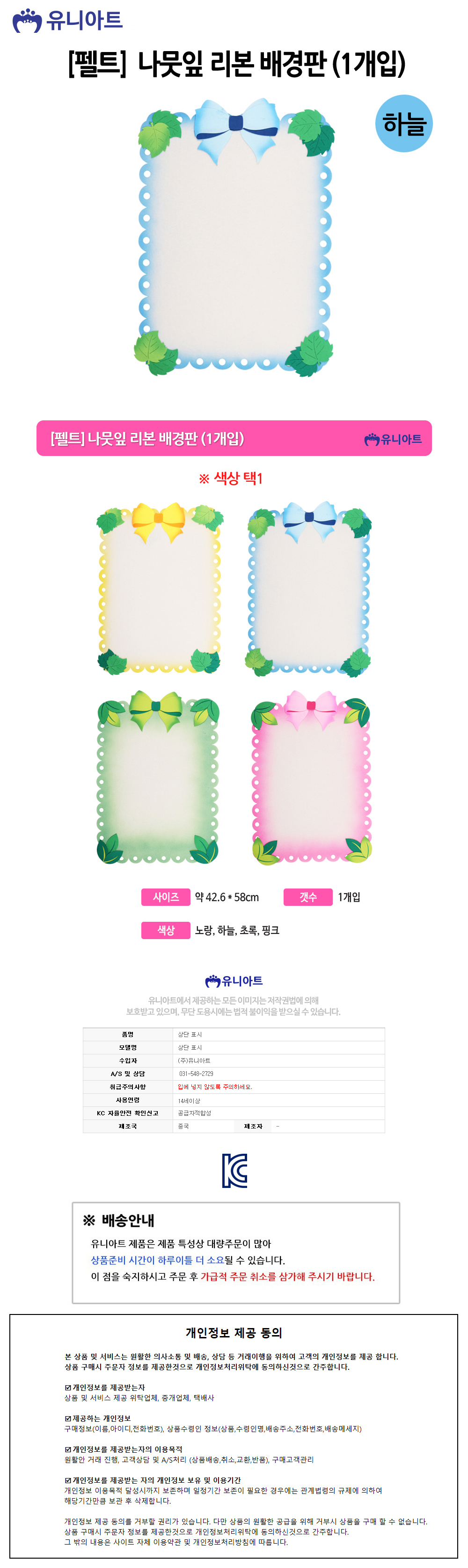 유니아트(펠트) 12000 나뭇잎 리본 배경판 (하늘) (1개입)