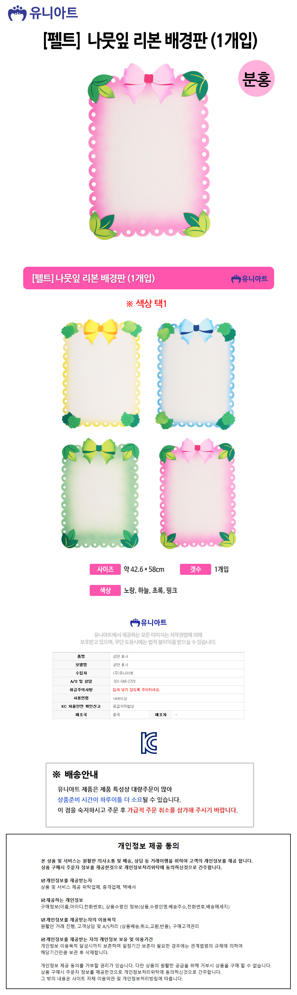 유니아트(펠트) 12000 나뭇잎 리본 배경판 (핑크) (1개입)