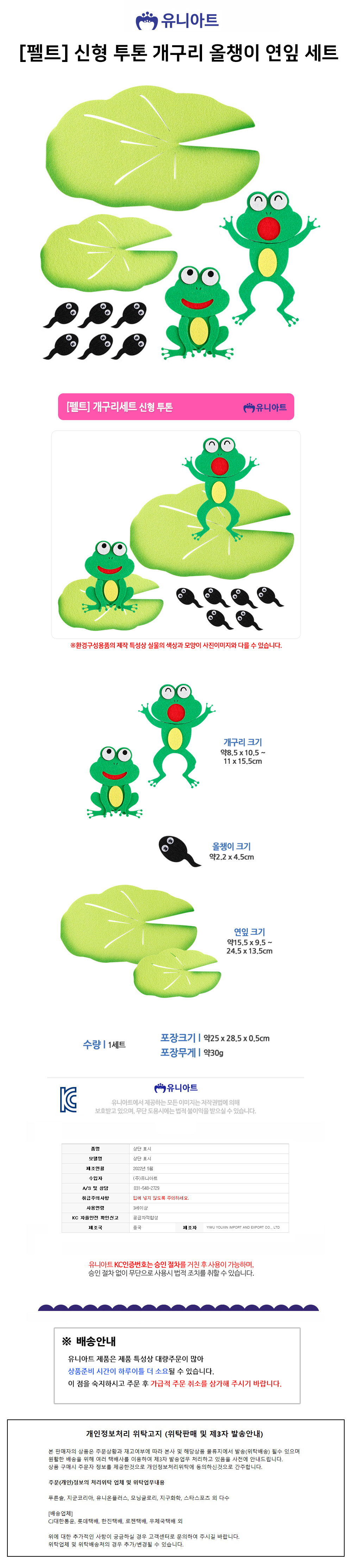 유니아트 (펠트) 신형 투톤 개구리 올챙이 연잎 세트