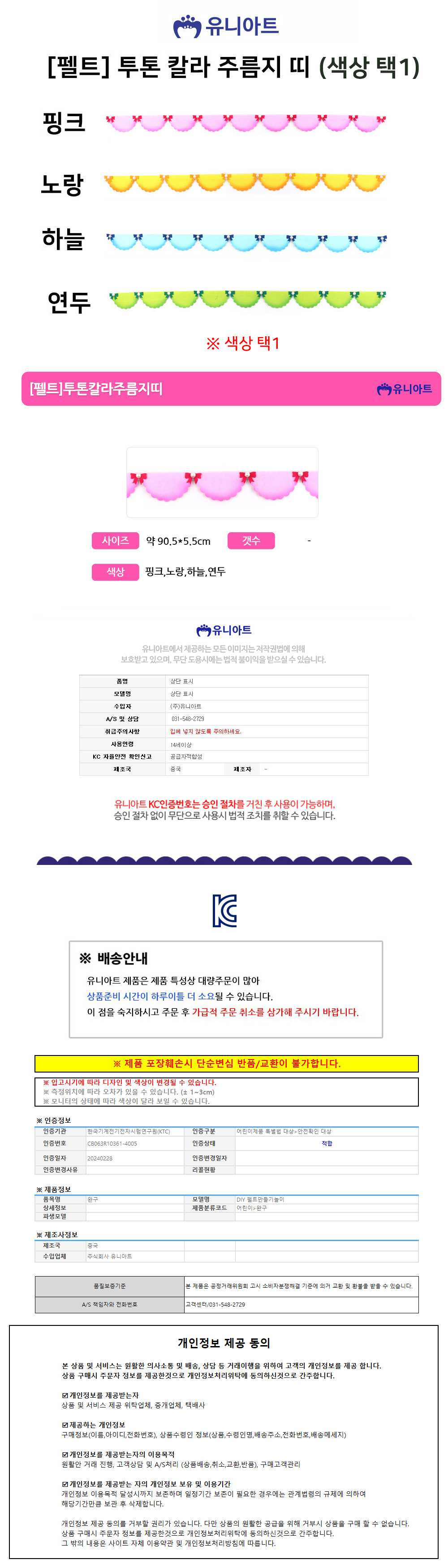 유니아트 (펠트) 투톤 칼라 주름지 띠 (택1)