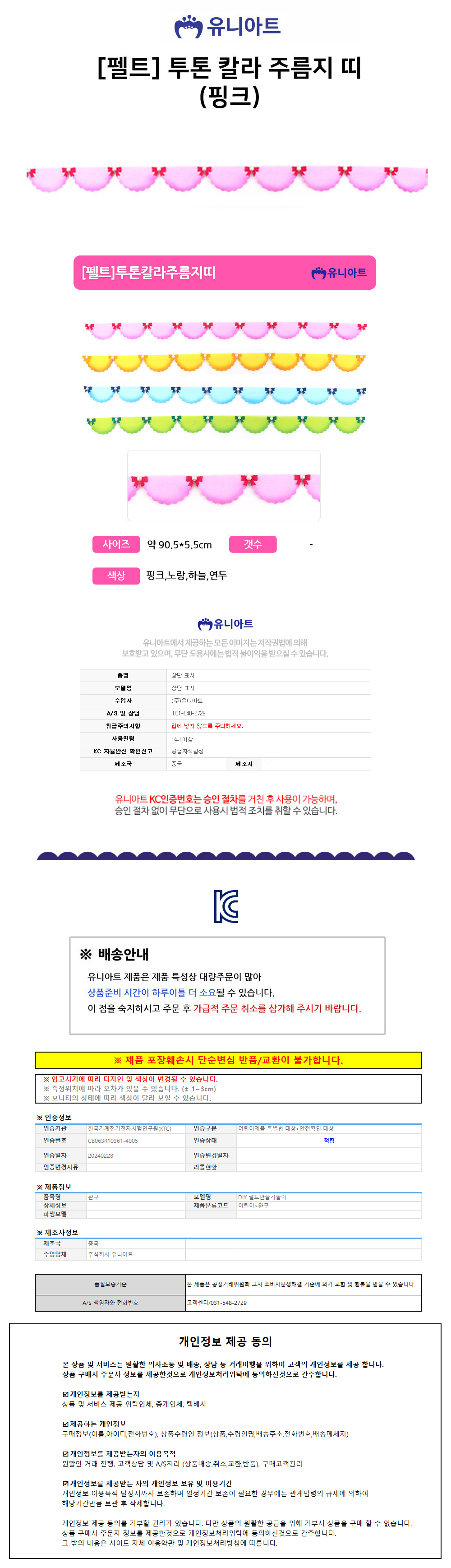 유니아트 (펠트) 투톤 칼라 주름지 띠 (핑크)