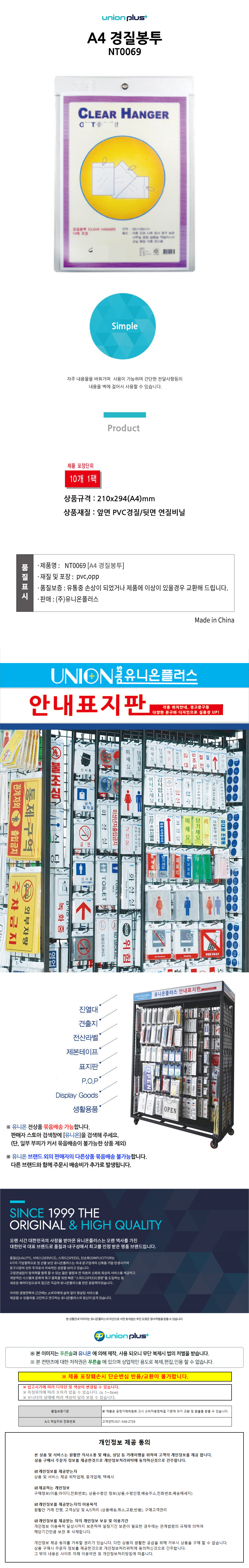유니온 안내판 부착형꽂이 POP꽂이 경질봉투 세로A4 (NT0069)