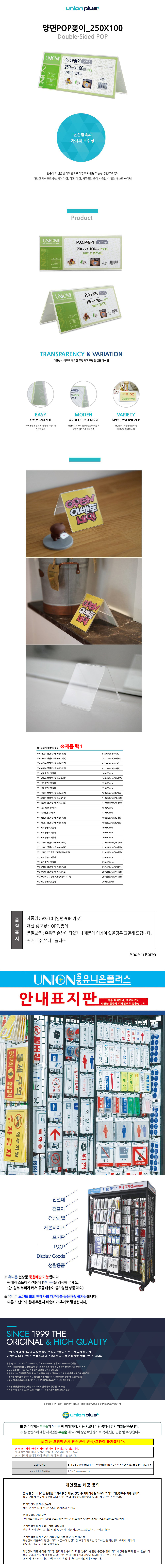 유니온 아크릴메뉴판 양면 POP꽂이 250x100mm (V-2510) 아크릴안내판