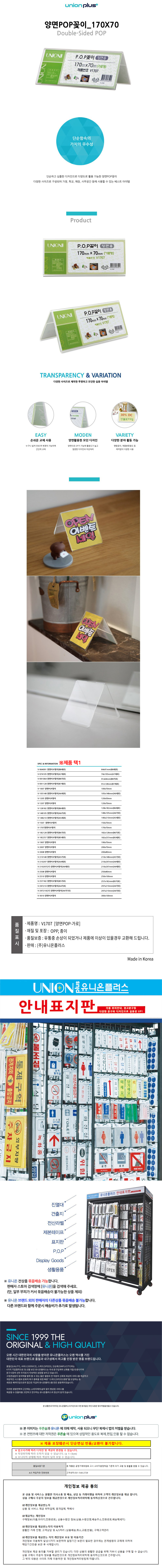 유니온 아크릴메뉴판 양면 POP꽂이 170x70mm (V-1707) 아크릴안내판